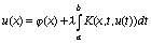 Пусть функция (x)C[a,b], а функция K(x,t,u) - непрерывная функция своих аргументов при x,t[a,b], - < u < . Кроме того, функция K(x,t,u) удовлетворяет условию Липшица по переменной u: