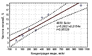 леталей показал, что зависимость их роста от концентрации меди