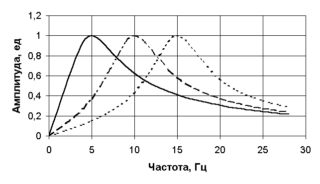где: w Н, D w П - соответственно резонансная частота и половина полосы пропускания полосового фильтра. Амплитудная частотная характеристика для трех резонансных частот представлена на рис. 1.
