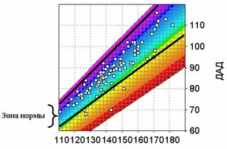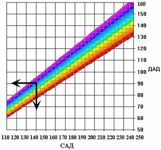 зону нормы СТАД, получим номограмму оптимальных сочетаний САД и ДАД, в