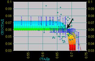 периоды, в виде среднеквадратичного отклонения показателя - СКОСТАДс,