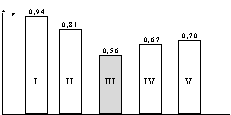 обусловило выбор высокого ценза значимости (r³0,7). Разнонаправленность корреляционных