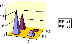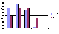 Рис. 2. Уменьшение числа больных с приступами удушья после КВЧ-терапии: 1 ряд - до лечения, 2 ряд - после лечения;