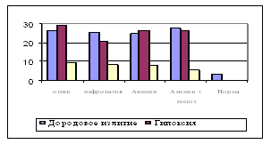 и гипоксия встречаются в 10% случаях, при анемии с гестозом