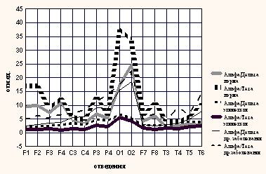 мощности a- к D- и a- к q-диапазонов частот по всем отведениям ЭЭГ - так как для патологии